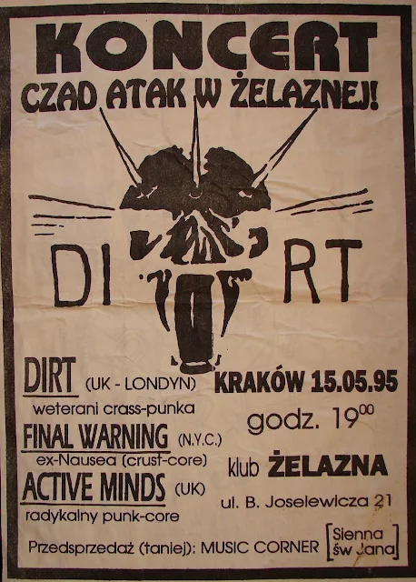 Plakat piąty od góry - koncert Apatii, Agni Hotry i Guess Why był 19 listopada a nie 19 lutego. Cyfra 11 na plakacie, rzeczywiście przypomina, rzymską cyfrę II. Na tym koncercie kręcono program "Alternativi" o Straight Edge. Tydzień później w Rhisome grał Alians i Izrael (ten plakat również tu jest). :)